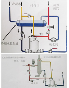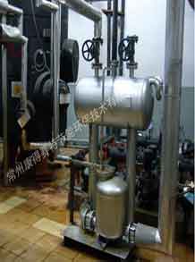 通常冷凝水可以通過疏水閥很方便地排出設(shè)備,進(jìn)入冷凝水排放系統(tǒng),如果冷凝水已經(jīng)被污染,則應(yīng)該直接排放掉;如果沒有污染,可以將其回收到鍋爐給水箱以利用冷凝水含有的熱量,這樣同時也節(jié)省了水和水處理的費(fèi)用。有時用汽設(shè)備內(nèi)部會產(chǎn)生真空,這樣會影響冷凝水的排出,從而影響蒸汽換熱效率,這時冷凝水就需要用泵壓出去。